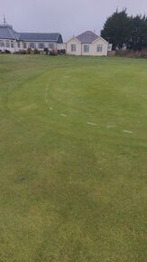 They have put some white dotted lines on the greens and aprons. These are in place to signify the edge of the green etc where they have grown in size over the last two seasons. When you mow on slopes the mower will drift slightly and over time this adds to the m² area. We are not making the greens smaller we're putting them back into shape to fit the irrigation patterns again.